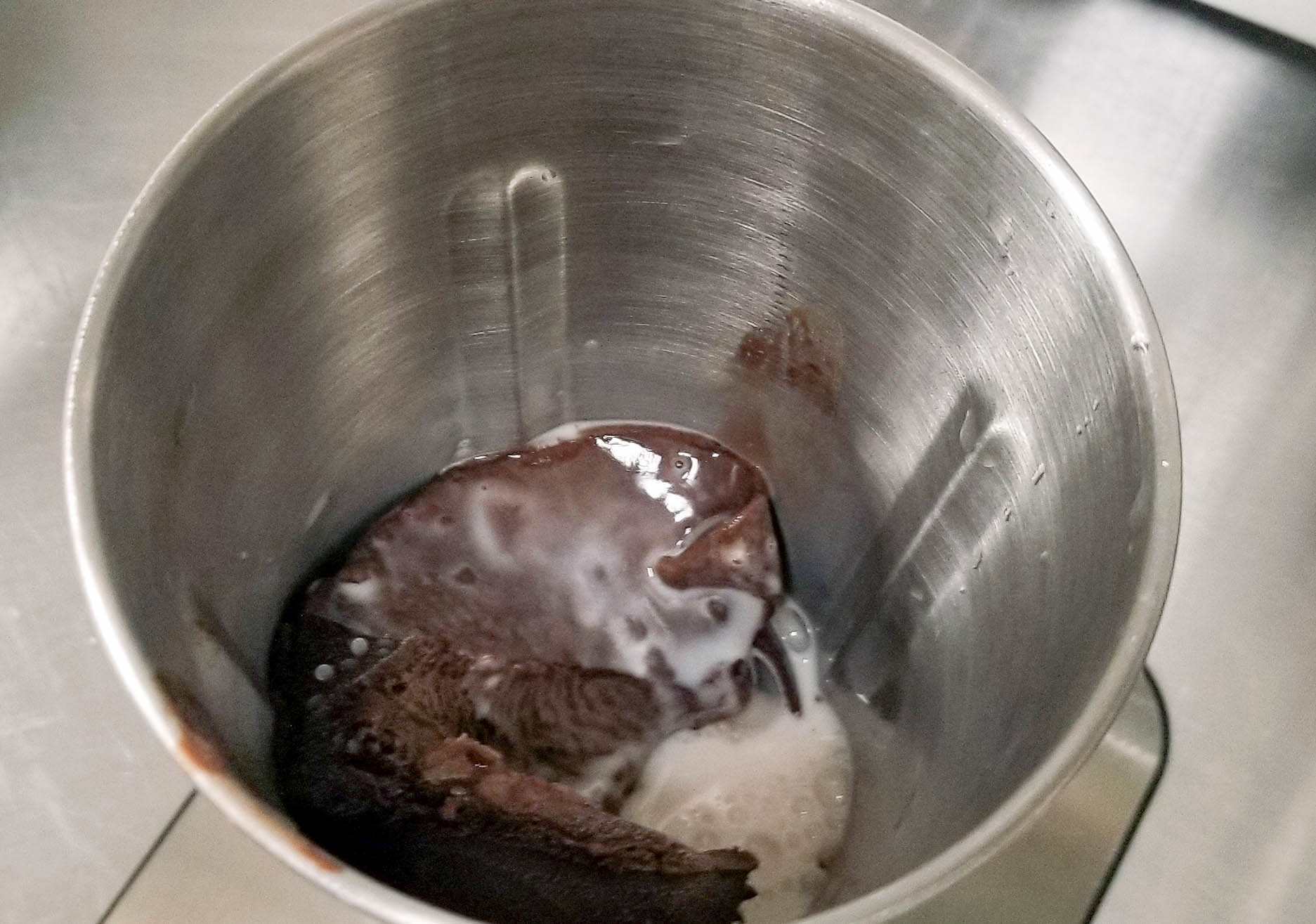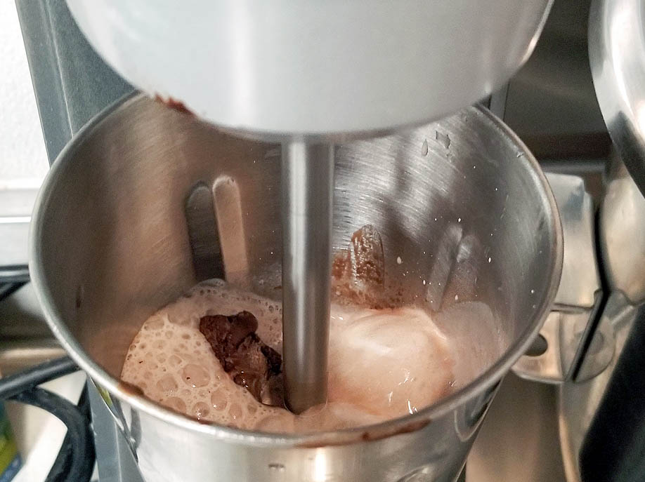 Combine gelato and milk in the mixing canister, and process until smooth. Transfer to a shake glass, and top with whipped cream. Insert one straw. Place on a banana leaf on a small round plate.