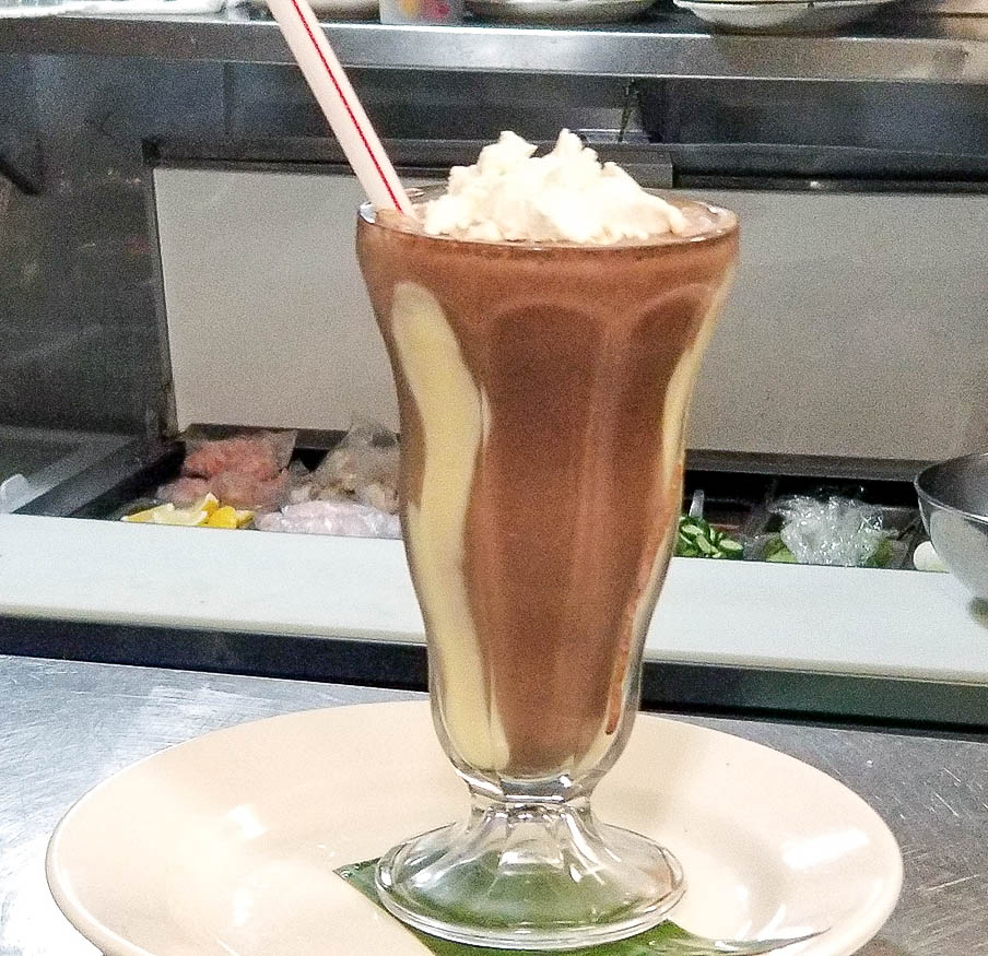 | Description: | Chocolate with vanilla cream garnish or vanilla garnished with strawberry syrup. Whipped cream. |